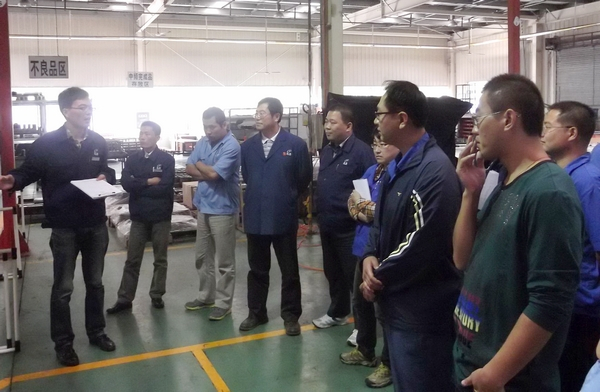 会议听取了零部件制造部关于技术创新管理经验和成果汇报。在生产现场与会人
