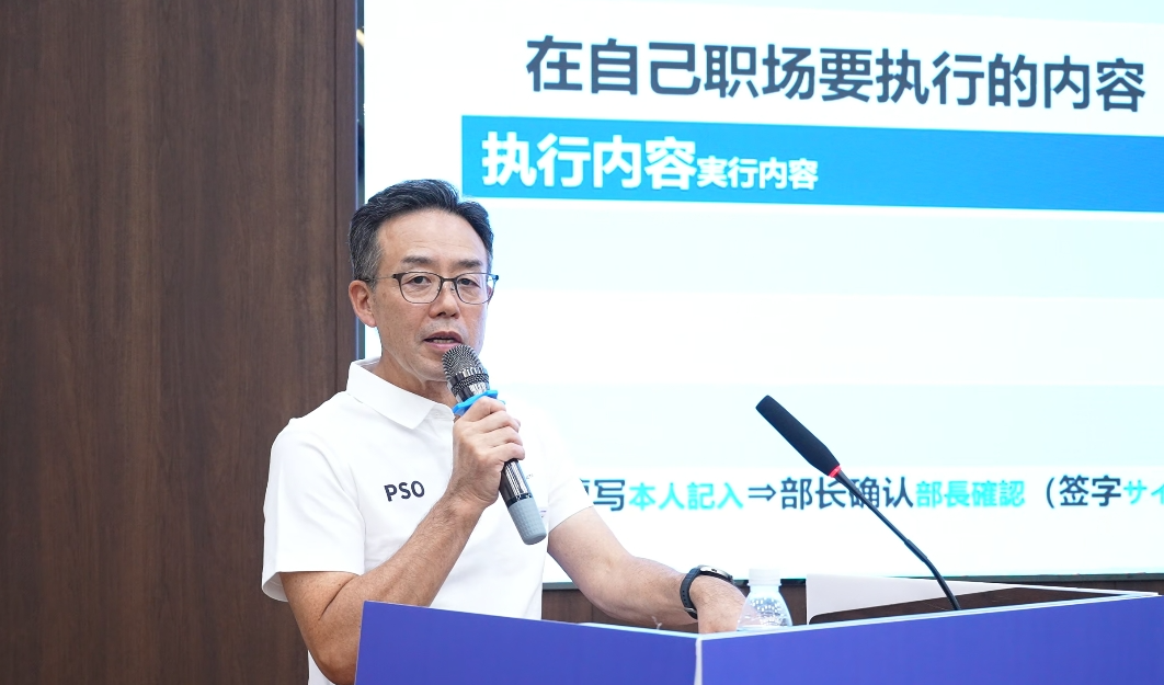 破冰环节后,长尾雅浩导师以《通过可视化、改变景色、标准化提高现场力》为题展开首单元教学。他提出“改善始于眼睛、环境和机制,而非工具或机械”,通过安东系统、安全帽定置管理、换型标准作业票等实例,生动展示如何通过: 可视化:暴露问题点,让异常无所遁形;改变景色:优化行为环境,激发主动改善意识;标准化:固化优秀实践,实现效率与质量的双提升。 之后,长尾导师带领学员深入生产一线,实地观察流程、识别问题,将“问题不隐藏、全员共改善”的文化理念转化为行动力。课程还系统导入精益六西格玛方法论,为学员提供从问题发现到解决的全流程工具框架。